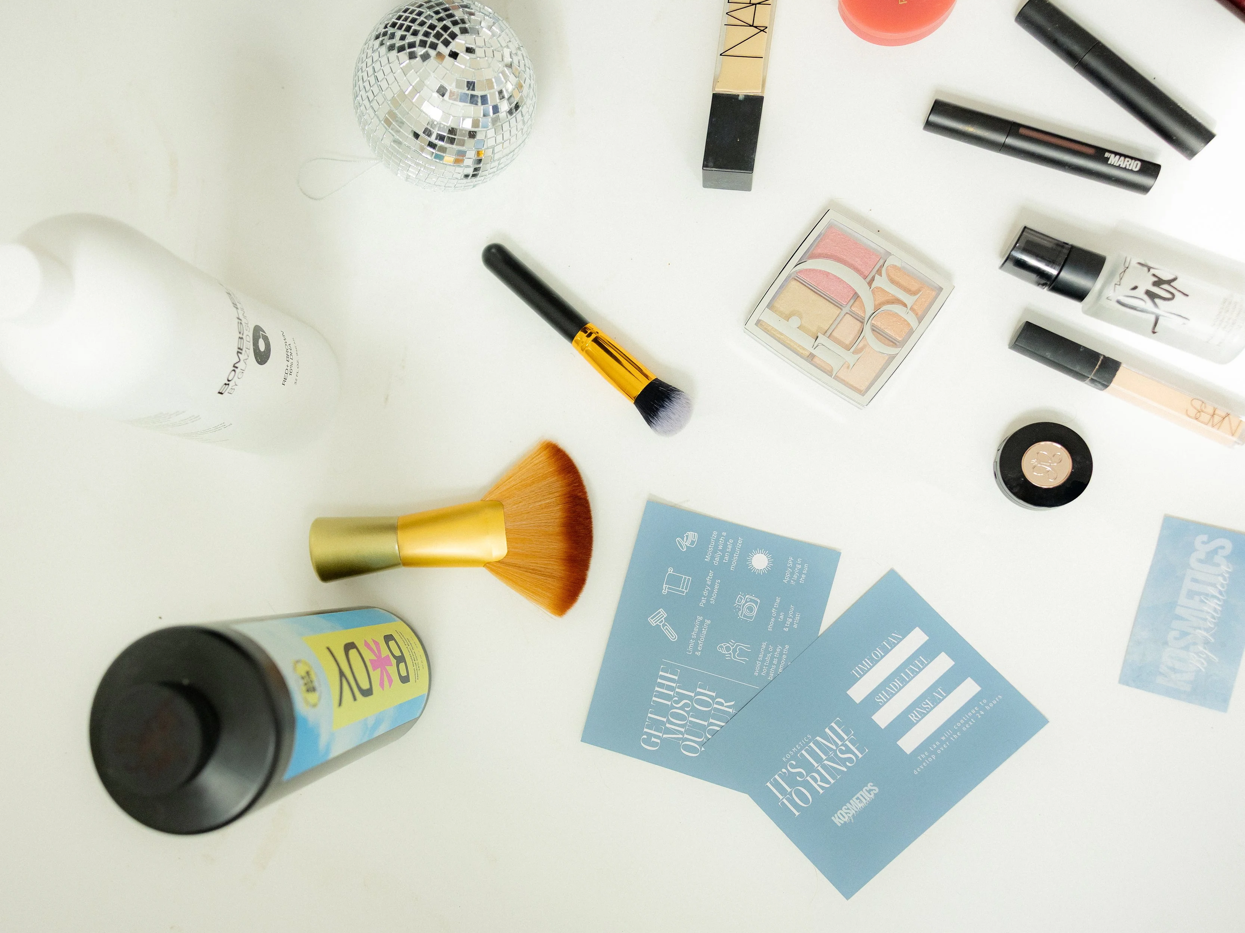 We offer mobile spray tanning and on-site makeup services. For mobile tans, you’ll just need a small 6 ft x 6 ft space for our 45“ x 45“ tent and access to an outlet. T